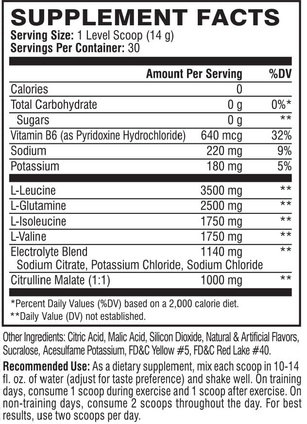 Los tres BCAAs son leucina, isoleucina y valina. Es importante tener en cuenta que muchas fórmulas de BCAAs contienen solo 5 gramos de BCAAs por servicio, lo que significa que pueden carecer de leucina para estimular efectivamente la síntesis de proteína muscular (MPS). Cada servicio de XTEND® Original contiene 3.5 gramos de leucina para estimular al MPS, así como 1.75 gramos de isoleucina como de valina, en una proporción respaldada por investigación de 2:1:1 que se encuentra en la naturaleza.